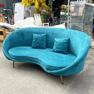 Sofa Nhung Cũ Màu Xanh Thiết Kế Uốn Lượn Độc Đáo