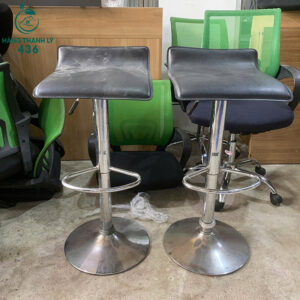 Ghế Bar Cũ Mặt Đệm Đen Chân Tròn Inox Sáng Bóng