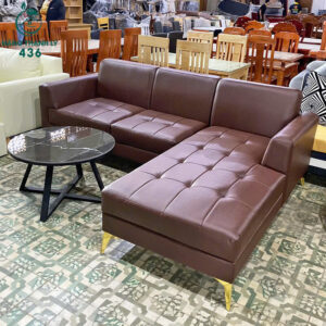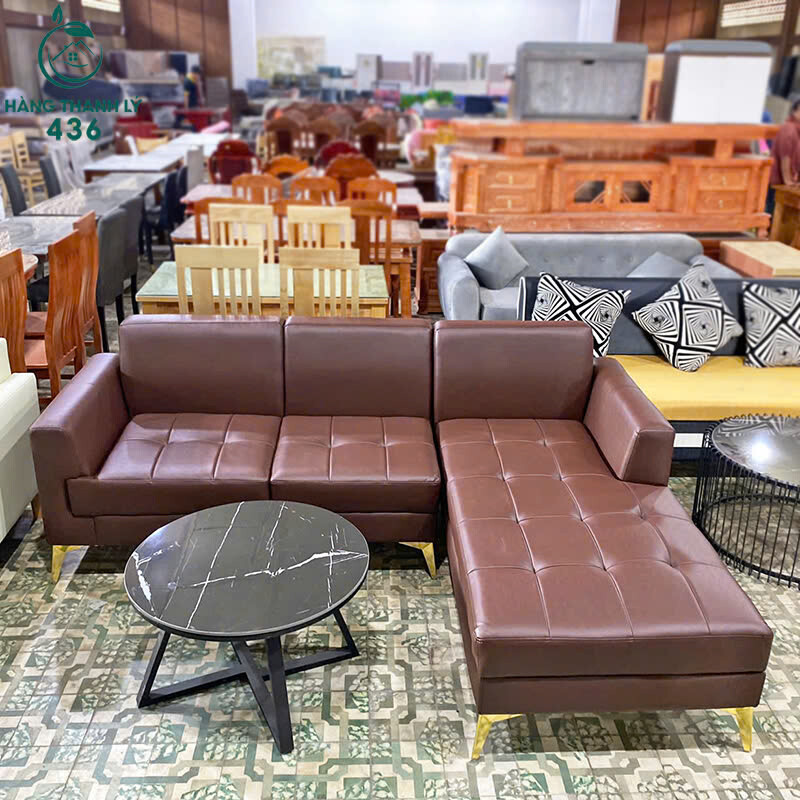 Thanh Lý Ghế Sofa Bọc Da Màu Nâu Chữ L Hiện Đại Mới 99%