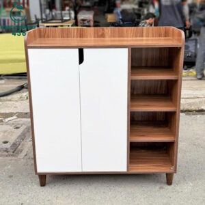 - Mô tả: Mẫu tủ giày có kiểu dáng đơn giản, nhưng vẫn lại sự hiện đại, nhỏ gọn và tiện dụng. Kệ có 2 cánh cửa lớn với các khe thoáng giúp giày dép luôn khô ráo, cùng các kệ mở bên hông để sắp xếp dễ dàng các phụ kiện hoặc vật dụng nhỏ. Màu sắc phối giữa trắng và vân gỗ tự nhiên tạo nên sự hài hòa và phù hợp với nhiều không gian sống.