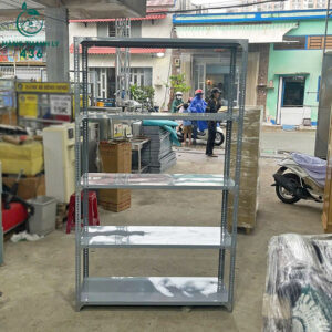 - Mô tả: Kệ sắt v lỗ đa năng, thiết kế đơn giản và chắc chắn. Kệ gồm 5 tầng được làm từ sắt sơn tĩnh điện màu xám, có khả năng chịu lực tốt. Các tầng có thể điều chỉnh độ cao linh hoạt nhờ hệ thống lỗ dọc theo khung, phù hợp để lưu trữ hàng hóa, vật dụng gia đình hoặc trong kho. Bề mặt kệ sáng bóng, dễ vệ sinh, khung chân được bắt vít cố định giúp kệ đứng vững, không rung lắc. Sản phẩm thích hợp dùng trong văn phòng, nhà kho, cửa hàng hay gara để sắp xếp đồ gọn gàng mang lại không gian ngăn nắp, tiện lợi.