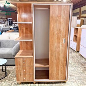- Mô tả: Tủ nhựa kiểu dáng đa năng, phối màu vân gỗ sang trọng, thiết kế gồm 2 cánh lùa để treo quần áo hoặc đựng chăn gối, tiện lợi cho phòng ngủ nhỏ. Bên trái tích hợp 3 ngăn kéo có khóa riêng biệt và 3 hộc kệ mở dùng để trang trí, đặt sách, hộp đựng đồ hoặc vật dụng cá nhân. Chất liệu nhựa dễ vệ sinh không thấm nước. Tủ có bánh xe dưới chân giúp di chuyển nhẹ nhàng khi cần. Thiết kế hiện đại, phù hợp nhiều không gian từ phòng ngủ đến phòng trọ.