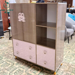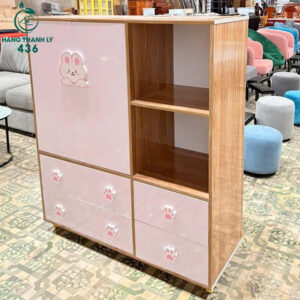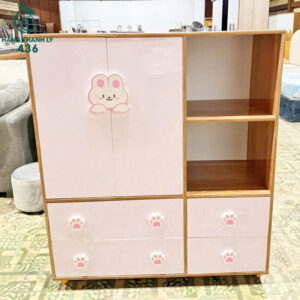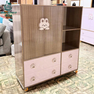 - Mô tả: Tủ nhựa kiểu dáng trẻ trung, hiện đại phù hợp với phòng ngủ gia đình trẻ, phòng trẻ em hoặc không gian cần sự nhẹ nhàng. Một bên là cánh tủ lớn và các ngăn kéo sâu có tay nắm hình móng chân dễ thương. Bên còn lại là 2 hộc trống chia tầng, dễ đặt sách, gấu bông hoặc vật dụng trang trí. Chiều cao tủ vừa tầm với trẻ em, dễ sắp xếp và sử dụng. Thiết kế kín – mở kết hợp tiện lợi, phù hợp nhiều mục đích: đựng quần áo, đồ chơi, đồ dùng học tập.