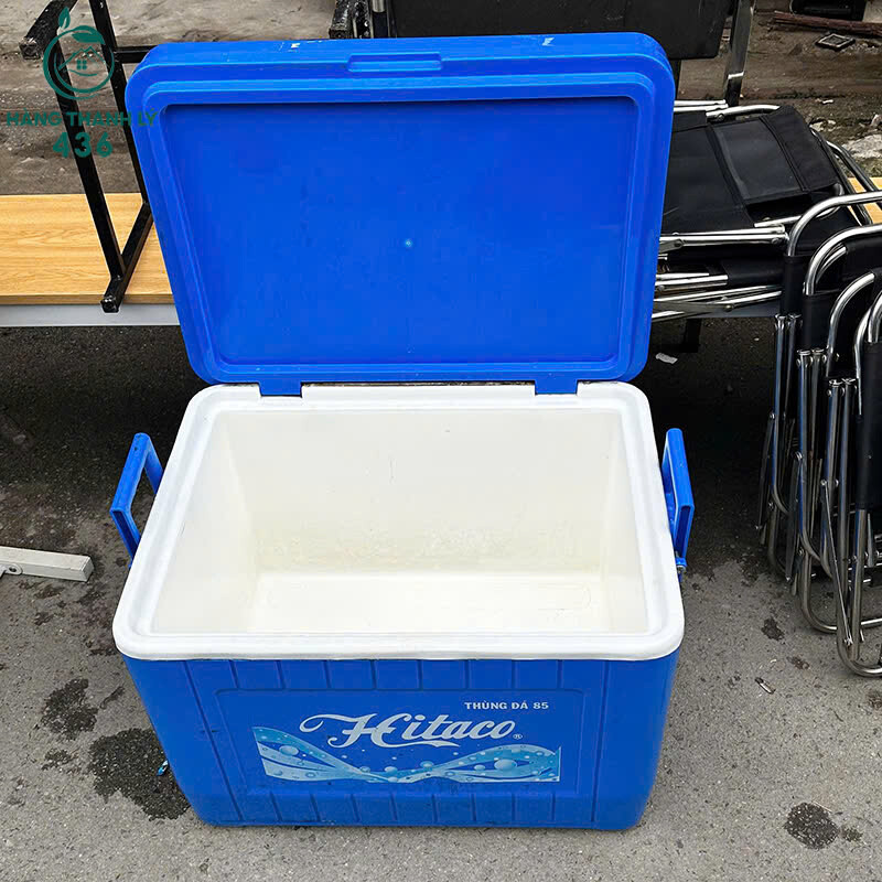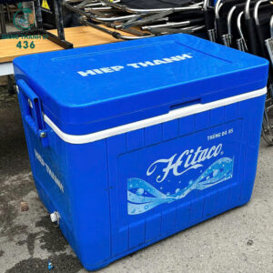 - Mô tả: Thùng đá nhựa Hiệp Thành cũ màu xanh dương nổi bật, dung tích 85 lít, được thiết kế chắc chắn với chất liệu nhựa cao cấp, chịu lực và giữ nhiệt tốt. Mặt ngoài in logo “Hitaco” cùng họa tiết sóng nước tạo cảm giác mát lạnh. Nắp thùng có dòng chữ “Hiệp Thành”, đóng mở dễ dàng nhờ bản lề chắc chắn. Bên hông có vòi xả tiện lợi giúp thoát nước đá tan nhanh chóng. Thùng phù hợp cho việc bảo quản thực phẩm, nước uống hoặc đá viên trong các buổi tiệc, quán ăn, hoặc hoạt động ngoài trời.