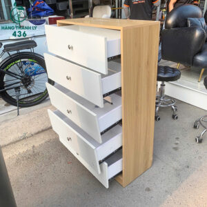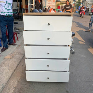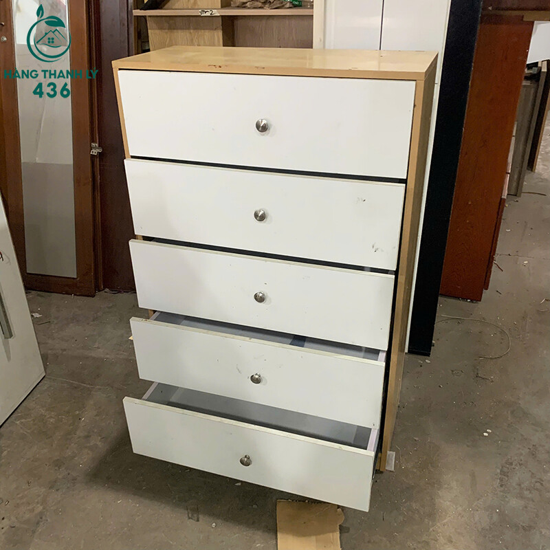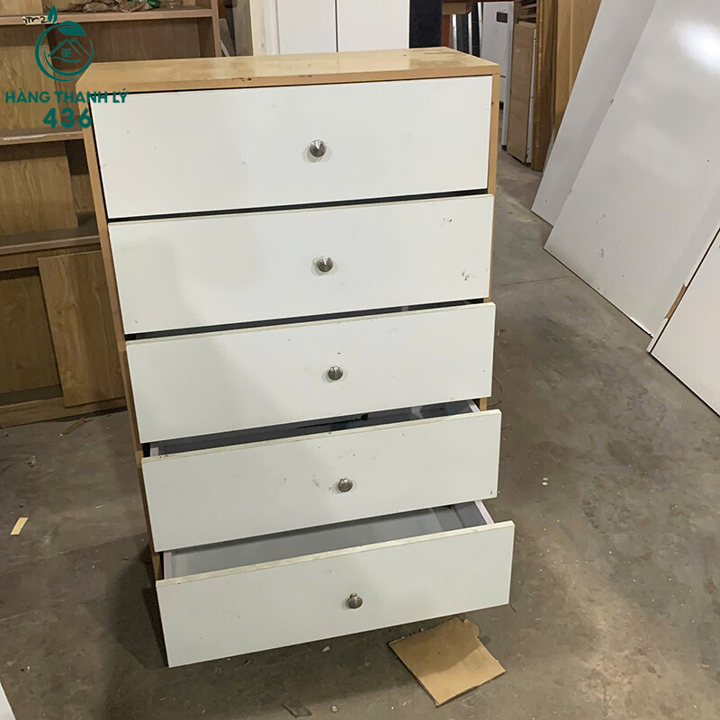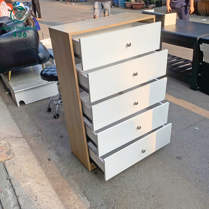 Mô tả: Sở hữu chiếc tủ 5 ngăn kéo thanh lý này giúp bạn sắp xếp cuộc sống và công việc ngăn nắp hơn với mức chi phí cực rẻ. Sản phẩm rất phù hợp cho những ai cần nhiều không gian chứa đồ nhưng diện tích phòng lại hạn chế. Khi trải nghiệm thực tế, bạn sẽ thấy phần ngăn kéo có tay cầm kim loại chắc chắn, thao tác đóng mở rất trơn tru và thuận tiện. Độ cao 1m05 vừa tầm tay, mặt trên của tủ còn có thể tận dụng để đặt bình hoa, khung ảnh hoặc máy fax văn phòng. Đây là món nội thất vừa mang tính thẩm mỹ cao với tông màu sáng, vừa đảm bảo công năng sử dụng lâu dài nhờ kết cấu gỗ ổn định, không bị cong vênh.