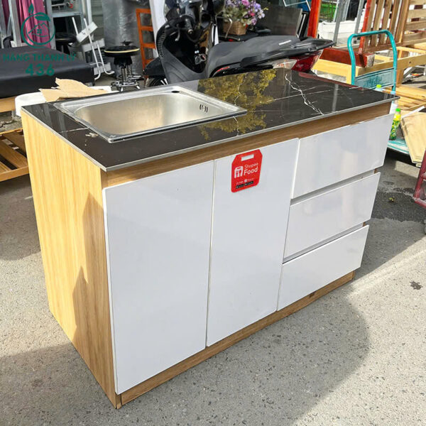 Tủ Bếp Cũ Mặt Đá Đen Vân Mây Chậu Rửa Inox