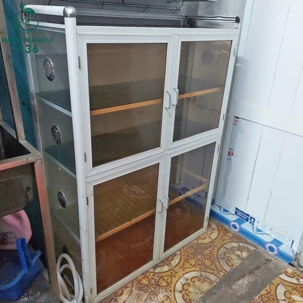 Tủ Chén Bát Cũ Nhôm Kính 4 Cánh Có Lỗ Thoáng Khí Giá Rẻ