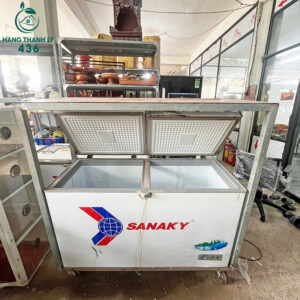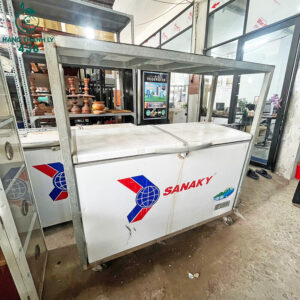 - Mô tả: Tủ đông cũ Sanaky, thiết kế 2 ngăn với dung tích lớn, phù hợp cho việc bảo quản thịt cá, hải sản, đồ đông lạnh số lượng nhiều. Tủ hoạt động ổn định, làm lạnh nhanh, giữ nhiệt tốt, giúp tiết kiệm điện năng. Bề ngoài có dấu vết sử dụng nhưng vẫn chắc chắn, các nắp đậy kín khít, dễ mở đóng. Đây là lựa chọn hợp lý cho các quán ăn, nhà hàng hoặc hộ kinh doanh nhỏ cần trữ thực phẩm an toàn với chi phí thấp.