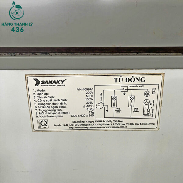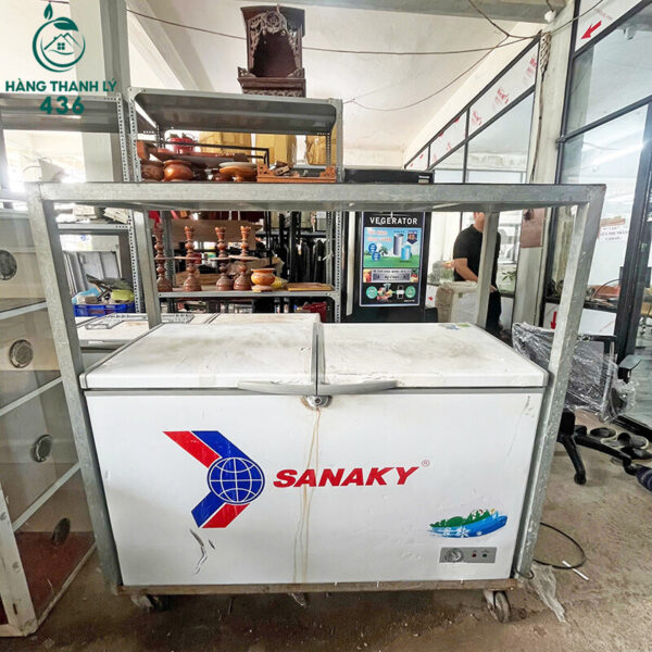 - Mô tả: Tủ đông cũ Sanaky, thiết kế 2 ngăn với dung tích lớn, phù hợp cho việc bảo quản thịt cá, hải sản, đồ đông lạnh số lượng nhiều. Tủ hoạt động ổn định, làm lạnh nhanh, giữ nhiệt tốt, giúp tiết kiệm điện năng. Bề ngoài có dấu vết sử dụng nhưng vẫn chắc chắn, các nắp đậy kín khít, dễ mở đóng. Đây là lựa chọn hợp lý cho các quán ăn, nhà hàng hoặc hộ kinh doanh nhỏ cần trữ thực phẩm an toàn với chi phí thấp.