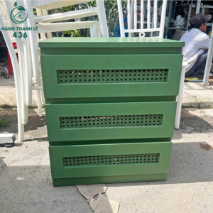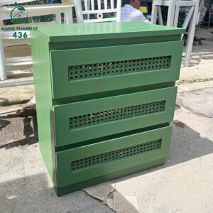 - Mô tả: Tủ ngăn kéo gỗ cũ màu xanh với thiết kế 3 ngăn kéo rộng rãi, phù hợp để đựng tài liệu, đồ dùng cá nhân hoặc vật dụng văn phòng. Tủ làm từ gỗ công nghiệp phủ sơn màu xanh độc đáo, vừa tạo điểm nhấn cho không gian vừa dễ dàng lau chùi. Các ngăn kéo trượt nhẹ nhàng, chắc chắn. Kích thước nhỏ gọn, dễ dàng sắp xếp vào nhiều vị trí khác nhau trong phòng ngủ, phòng khách hoặc văn phòng.