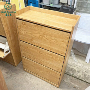 - Mô tả: Tủ đựng giày cũ 3 ngăn mở thông minh là lựa chọn tối ưu cho không gian sống hiện đại. Với thiết kế 3 ngăn riêng biệt, cơ chế mở nghiêng giúp việc lấy và cất giày dép trở nên nhanh chóng, gọn gàng mà không chiếm nhiều diện tích. Tủ được làm từ gỗ dễ lau chùi, giữ được vẻ đẹp sáng bóng trong thời gian dài. Mỗi ngăn có thể chứa từ 3–4 đôi giày, phù hợp cho gia đình nhỏ hoặc căn hộ chung cư. Màu sắc trang nhã giúp tủ dễ dàng kết hợp với các kiểu nội thất khác nhau, mang tính thẩm mỹ.