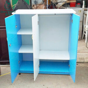 - Mô tả: Chiếc tủ quần áo dành cho trẻ em này có thiết kế nổi bật với tông màu xanh dương và trắng. Tủ có ba cánh mở, cung cấp không gian rộng rãi để cất giữ quần áo, đồ chơi và vật dụng cá nhân của bé, giúp phòng ngủ luôn ngăn nắp. Với màu sắc tươi sáng và họa tiết sinh động, sản phẩm không chỉ có công năng lưu trữ mà còn góp phần tạo nên không gian vui vẻ, đầy màu sắc cho phòng của bé.