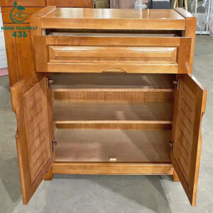- Mô tả: Tủ có thiết kế nhỏ gọn nhưng chắc chắn, phù hợp với nhiều không gian. Mặt trước của tủ nổi bật với một ngăn kéo lớn phía trên, tiện lợi để cất giữ các vật dụng nhỏ. Phía dưới là hai cánh cửa mở với các khe thoáng dạng lá sách dọc, không chỉ tạo điểm nhấn trang trí mà còn giúp thông gió tốt, rất thích hợp làm tủ giày dép hoặc tủ đựng đồ cần sự thoáng khí.