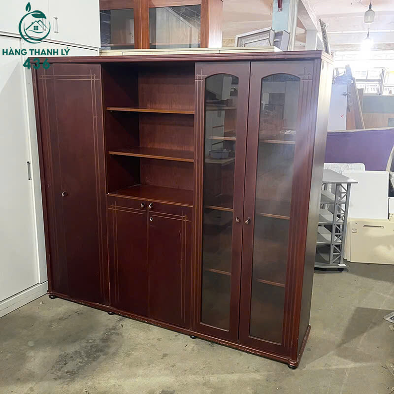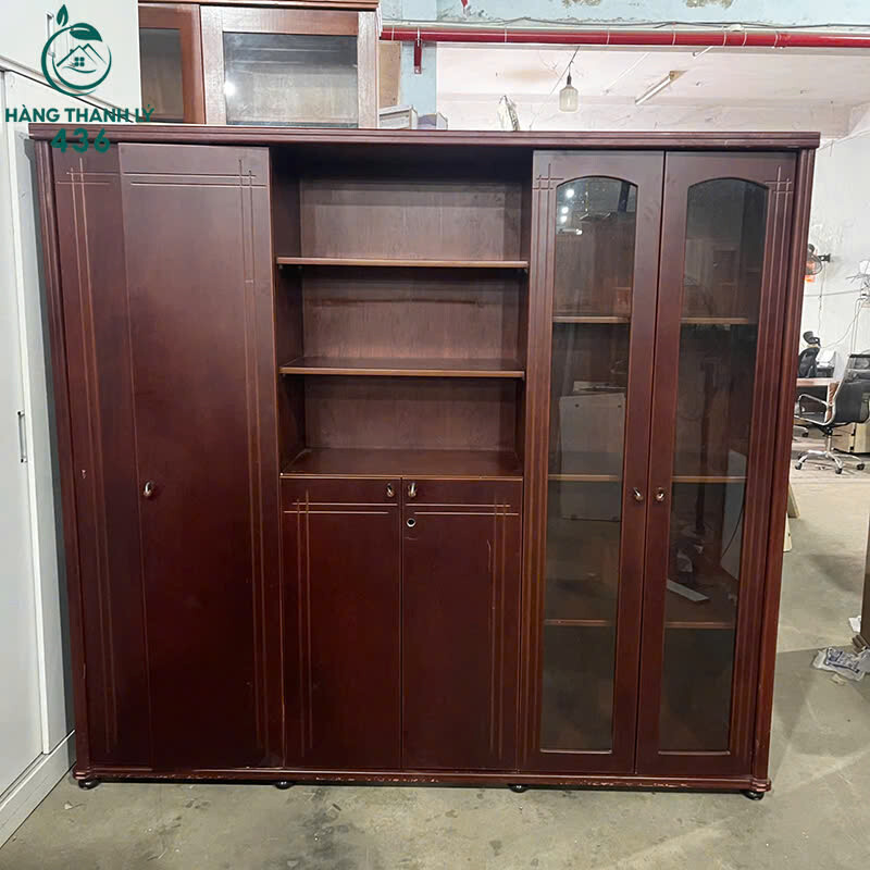 Mô tả: Mẫu tủ gỗ thiết kế dạng đứng với nhiều cánh mở và khoang chứa rộng, phù hợp cho nhu cầu lưu trữ số lượng lớn đồ dùng. Bên trong tủ được chia nhiều ngăn đều nhau, tiện để sắp xếp hồ sơ, tài liệu, quần áo hoặc vật dụng gia đình một cách gọn gàng. Chất liệu gỗ chắc chắn, màu nâu trầm dễ phối với nhiều không gian như văn phòng, cửa hàng, kho chứa hoặc nhà ở. Cửa tủ đóng mở ổn định, bản lề còn tốt, tổng thể tủ còn sử dụng bền bỉ, là lựa chọn tiết kiệm chi phí cho khách cần tủ chứa đồ lớn.