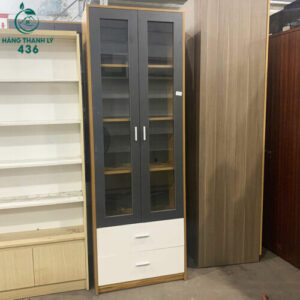 - Mô tả: Tủ hồ sơ cũ có thiết kế hiện đại, gồm hai cánh cửa kính phía trên giúp dễ dàng quan sát tài liệu bên trong, phù hợp cho việc trưng bày sách, hồ sơ hoặc vật dụng văn phòng. Bên dưới là hai ngăn kéo màu trắng, tạo điểm nhấn tinh tế và cung cấp thêm không gian lưu trữ kín đáo. Khung tủ phối hợp giữa màu gỗ trầm và chi tiết sáng màu, mang lại vẻ sang trọng và hài hòa. Các tầng bên trong được chia đều, thuận tiện cho việc sắp xếp giấy tờ theo từng nhóm.