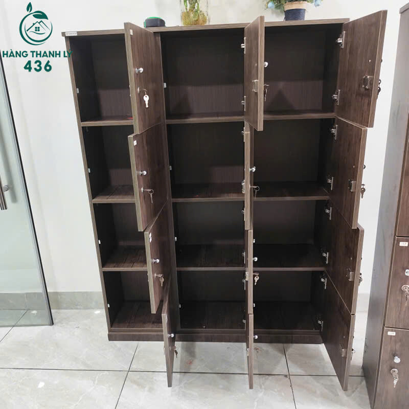 - Mô tả: Tủ hồ sơ nhiều ngăn giúp sắp xếp đồ đạc gọn gàng, phù hợp cho văn phòng, phòng gym, siêu thị mini, cửa hàng hoặc khu vực nhân viên. Mỗi ngăn đều có khóa riêng, đảm bảo tính bảo mật khi cất giữ vật dụng cá nhân. Thiết kế vân gỗ màu nâu tạo cảm giác sang và sạch sẽ, gỗ bền chắc, dễ lau chùi. Kích thước gọn gàng, đặt sát tường tối ưu diện tích. Sản phẩm thích hợp cho đơn vị cần tủ để nhân viên sử dụng hằng ngày.