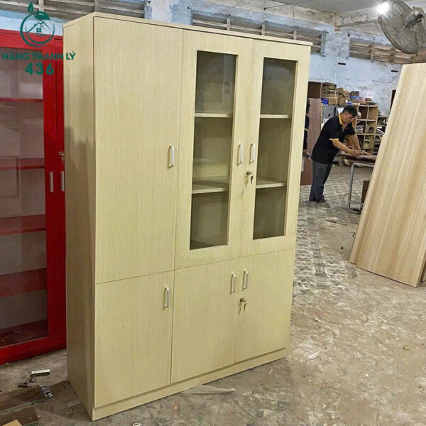 - Mô tả: Tủ hồ sơ gỗ với thiết kế tiện lợi, phần trên có cửa kính giúp dễ dàng quan sát tài liệu bên trong, phù hợp để trưng bày và lưu trữ sách, hồ sơ hoặc vật dụng văn phòng. Phần dưới là các ngăn tủ gỗ kín đáo, có khóa chắc chắn, đảm bảo an toàn cho giấy tờ quan trọng. Chất liệu gỗ dễ vệ sinh, mang lại không gian làm việc chuyên nghiệp và gọn gàng. Kích thước tủ lớn, đáp ứng nhu cầu lưu trữ nhiều tài liệu mà vẫn tiết kiệm diện tích.