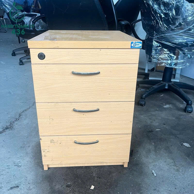 Tủ Đầu Giường Gỗ Cũ 3 Ngăn Thiết Kế Nhỏ Gọn Màu Nâu Sáng