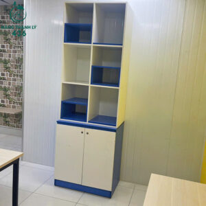 Tủ Kệ Hồ Sơ Gỗ Cũ 2 Cánh Màu Trắng Phối Xanh Đẹp Mắt