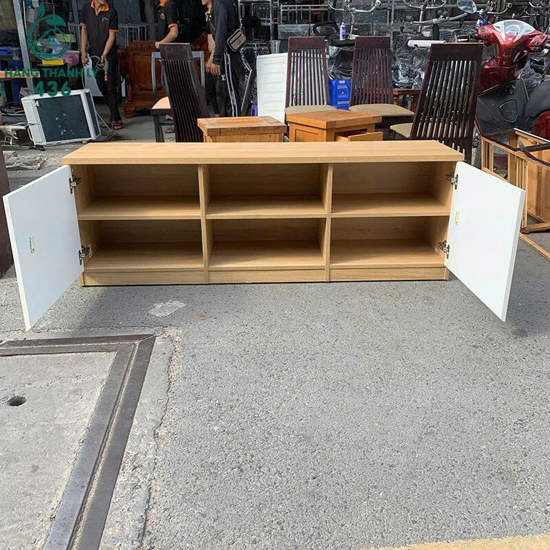 Tủ Kệ Tivi Cũ 1M6X40CMX55CM Vân Gỗ Phối Trắng