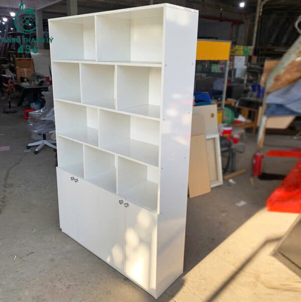 - Mô tả: Tủ trưng bày cũ màu trắng được làm từ gỗ, bề mặt láng mịn, dễ vệ sinh. Thiết kế gồm nhiều ngăn lớn nhỏ, phù hợp trưng bày sách, đồ trang trí, hồ sơ hoặc vật dụng văn phòng. Phần dưới có cánh tủ giúp cất đồ gọn gàng, tạo sự ngăn nắp cho không gian. Màu trắng trung tính, dễ phối hợp với mọi phong cách nội thất. Tủ thích hợp đặt tại văn phòng, phòng khách, showroom hoặc cửa hàng. Đây là lựa chọn tiết kiệm, vừa đẹp vừa tiện dụng.