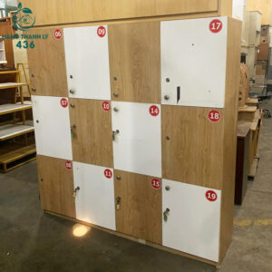 Tủ Locker Cũ Nhiều Ngăn Phối Trắng Vân Gỗ