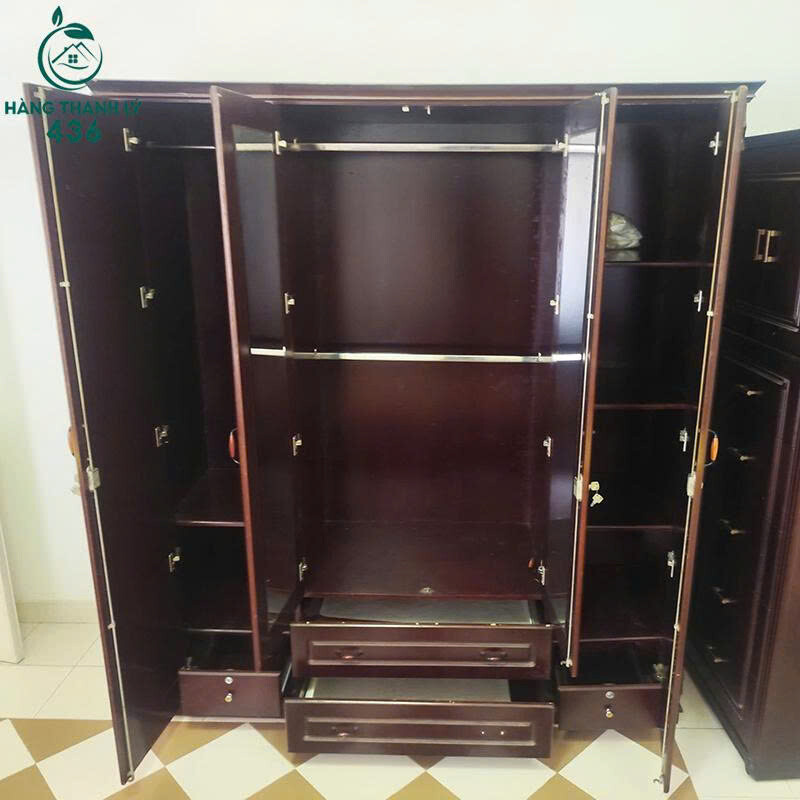 Tủ Quần Áo Cũ 1M8X2MX77CM 4 Cánh Gỗ Màu Nâu