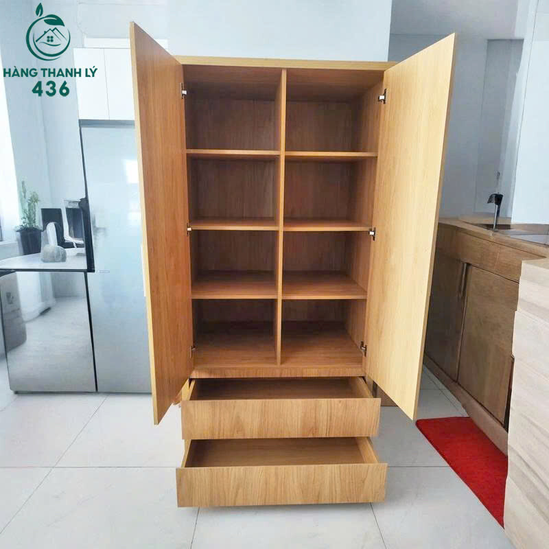 Mô tả: Mẫu tủ quần áo gỗ công nghiệp thiết kế 2 cánh mở rộng, bên trong chia nhiều ngăn để sắp xếp quần áo, chăn mền gọn gàng. Phía dưới có hộc kéo tiện lợi để đồ cá nhân hoặc phụ kiện. Tủ màu vân gỗ sáng, kiểu dáng đơn giản, dễ bài trí trong phòng ngủ gia đình, căn hộ hoặc phòng trọ.