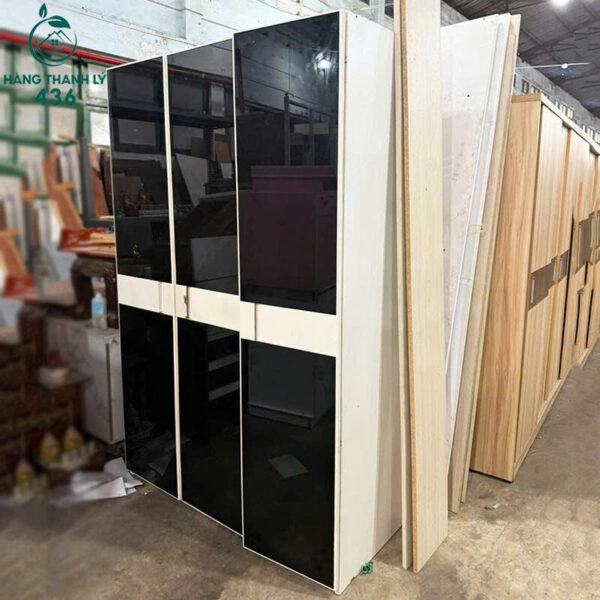 - Mô tả: Tủ quần áo cũ mặt kính đen thiết kế hiện đại, kết hợp màu đen – trắng tinh tế, phù hợp cho mọi không gian văn phòng hoặc nhà ở. Kết cấu tủ chia thành nhiều ngăn rộng, dễ dàng sắp xếp quần áo, hay đồ dùng cá nhân. Phần cửa tủ làm bằng kính màu đen bóng, tạo điểm nhấn sang trọng và chuyên nghiệp. Khung tủ sử dụng gỗ, và dễ vệ sinh. Tủ còn mới khoảng 90%, hoạt động trơn tru, không hư hỏng.