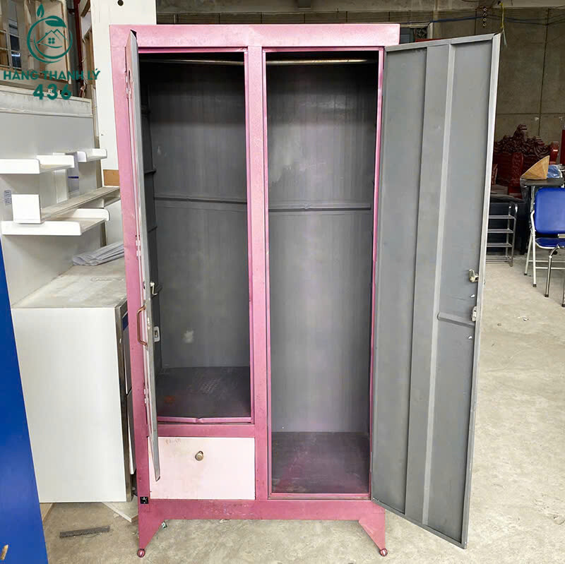 - Mô tả: Tủ quần áo cũ với thiết kế 2 cánh tiện dụng, kèm gương lớn giúp bạn dễ dàng kiểm tra trang phục mỗi khi ra ngoài. Màu sắc tủ hồng nhạt nhẹ nhàng, phù hợp với nhiều không gian nội thất. Chất liệu sắt bền bỉ, chống mối mọt, dễ dàng vệ sinh. Sản phẩm phù hợp cho gia đình hoặc văn phòng nhỏ.