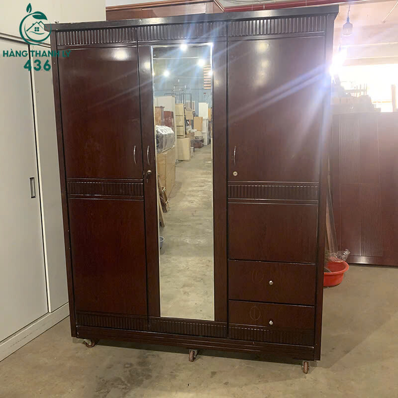 Mô tả: Mẫu tủ quần áo gỗ cũ thiết kế 3 cánh rộng rãi, trong đó có 1 cánh gương soi tiện lợi cho sinh hoạt hằng ngày. Tủ được làm từ gỗ chắc chắn, màu nâu đậm sang trọng, bề mặt còn đẹp, sử dụng ổn định. Bên trong chia khoang treo và khoang để đồ xếp gọn, kết hợp thêm ngăn kéo dưới giúp cất giữ vật dụng cá nhân tiện lợi. Phù hợp dùng cho phòng ngủ gia đình, phòng trọ hoặc căn hộ, giúp tiết kiệm chi phí.