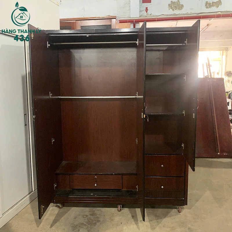 Tủ Quần Áo Gỗ Cũ Màu Nâu Đậm Chắc Chắn