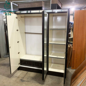 Mô tả: Chiếc tủ áo 3 cánh này mang đến trải nghiệm lưu trữ thông minh với sự phân bổ không gian hợp lý cho mọi loại trang phục. Trải nghiệm thực tế cho thấy các cánh tủ đóng mở rất chắc tay, gương soi sáng bóng không bị ố mờ theo thời gian. Màu sắc trầm ấm của tủ giúp bạn dễ dàng phối hợp với các món nội thất khác như giường ngủ hay bàn trang điểm. Các ngăn kệ bên trong được đóng chắc chắn, chịu lực tốt, giúp bạn thoải mái đựng các vật dụng nặng hoặc chăn màn. Dù là hàng thanh lý nhưng độ mới vẫn rất cao, kết cấu khung tủ vững chãi, không hề bị cong vênh hay rung lắc. Đây là phương án đầu tư cực kỳ tiết kiệm để sở hữu một chiếc tủ áo đa năng và thẩm mỹ.
