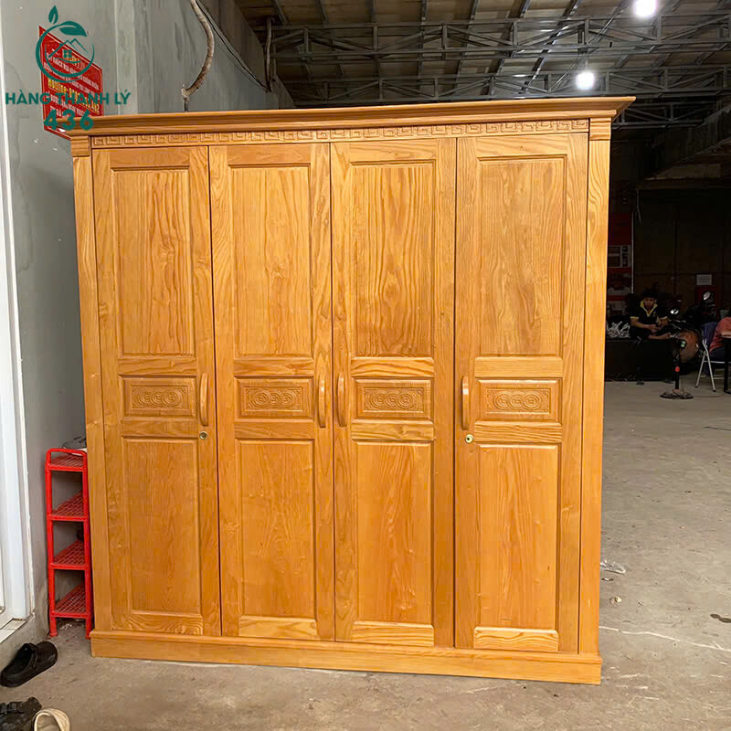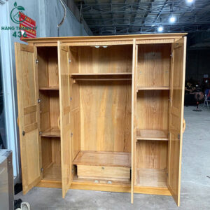 Tủ Quần Áo Gỗ Sồi Cũ 4 Cánh Kèm Hộc Thiết Kế Hiện Đại