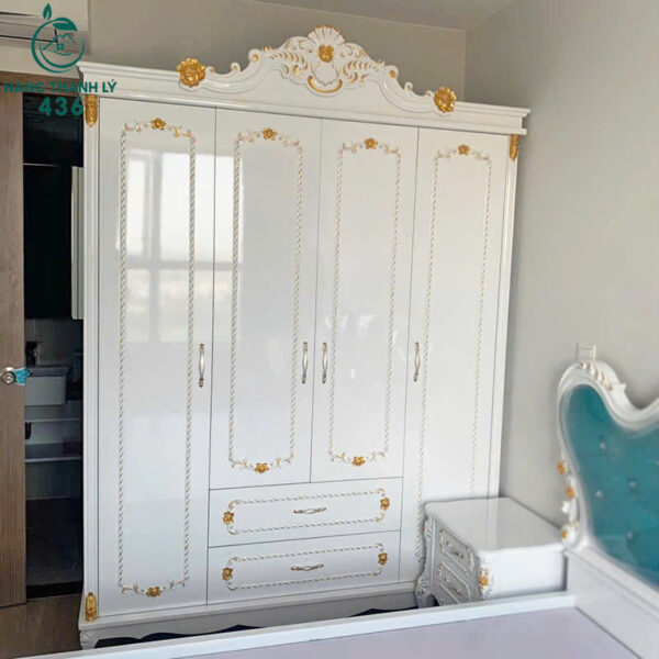 Tủ Quần Áo Hoàng Gia Màu Trắng Phối Vàng Mới 99% (Nhiều Mẫu)