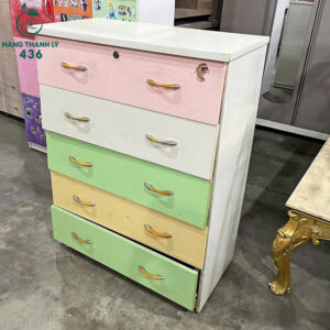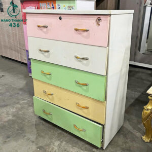 - Mô tả: Tủ nhưa cũ 5 ngăn kéo với thiết kế nhỏ gọn, nhiều màu sắc pastel bắt mắt gồm hồng, trắng, xanh và vàng – mang lại vẻ tươi sáng, phù hợp cho phòng ngủ hoặc phòng trẻ em. Chất liệu nhựa, bề mặt mịn, dễ lau chùi. Mỗi ngăn kéo rộng, kéo trơn, giúp sắp xếp quần áo, giấy tờ hoặc đồ dùng cá nhân gọn gàng. Ngăn trên cùng có khóa an toàn, tiện cho việc cất giữ vật dụng riêng tư. Tủ còn mới khoảng 90%, sử dụng ổn định, phù hợp cho gia đình, ký túc xá.