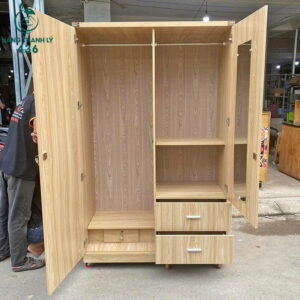 - Mô tả: Tủ quần áo gỗ 2 cánh này mang đến vẻ đẹp tự nhiên, bền bỉ, màu sắc nâu vân gỗ ấm áp, phù hợp với không gian sống hiện đại. Tủ thiết kế đơn giản với 2 ngăn cánh rộng rãi và 2 ngăn kéo bên dưới, giúp bạn dễ dàng lưu trữ quần áo, đồ dùng cá nhân hoặc các vật dụng khác. Sản phẩm có bánh xe tiện lợi, dễ dàng di chuyển và lắp đặt. Đây là lựa chọn lý tưởng cho các gia đình, văn phòng hoặc không gian nhỏ.