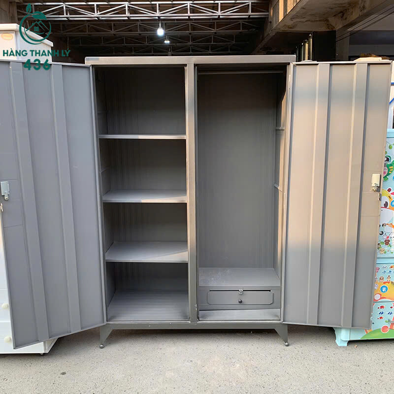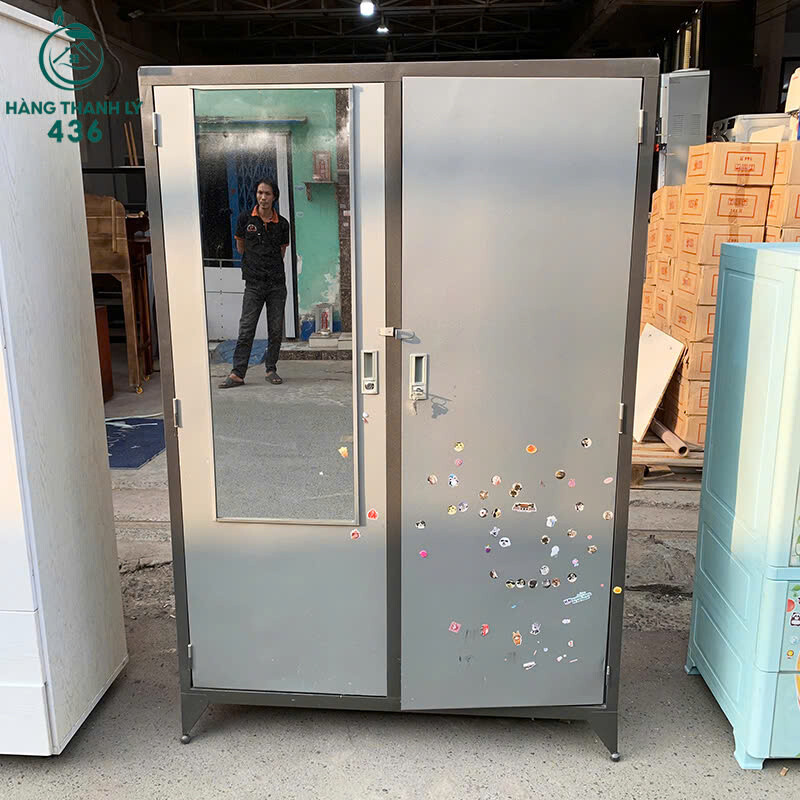 Mô tả: Tủ quần áo sắt 2 cánh thiết kế chắc chắn, sơn màu xám trung tính, một cánh thể gương soi tiện lợi khi thay đồ. Bên trong chia khoang treo đồ và các ngăn kệ để xếp quần áo gọn gàng, phù hợp dùng cho gia đình, phòng trọ hoặc văn phòng. Tủ còn sử dụng tốt, kết cấu cứng cáp, dễ vệ sinh và tiết kiệm không gian.