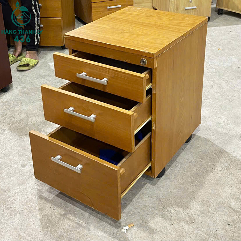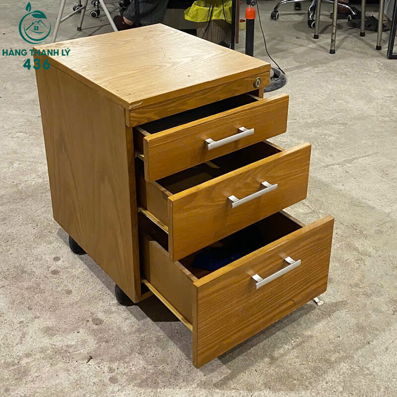 - Mô tả: Chiếc tủ phụ này là giải pháp tăng cường không gian lưu trữ hiệu quả cho khu vực làm việc của bạn. Với ba ngăn kéo, bạn có thể phân loại và cất giữ hồ sơ, giấy tờ, hoặc các vật dụng cá nhân một cách ngăn nắp. Ngăn kéo trên cùng được trang bị khóa, giúp bạn bảo quản các tài liệu mật hoặc đồ vật có giá trị. Thiết kế tủ đơn giản, màu vân gỗ nâu vàng tạo cảm giác ấm áp và chuyên nghiệp. Đặc biệt, tủ có bánh xe (hoặc chân nhựa kê) giúp di chuyển dễ dàng khi cần thiết hoặc để vệ sinh khu vực xung quanh. Đây là món đồ nội thất cần thiết cho mọi văn phòng.