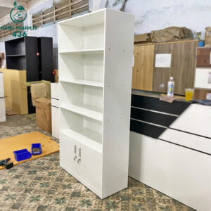 - Mô tả: Tủ trưng bày gỗ màu trắng với thiết kế thanh lịch, hiện đại, bao gồm 4 ngăn rộng rãi phía trên và 2 cửa kéo có khóa an toàn phía dưới. Các ngăn giúp bạn trưng bày các vật dụng, sản phẩm, hoặc đồ trang trí một cách đẹp mắt. Phần dưới với 2 cửa kéo kín đáo giúp lưu trữ các đồ vật khác một cách gọn gàng. Tủ có chất liệu gỗ bền đẹp, màu trắng tinh tế phù hợp với nhiều phong cách nội thất. Đây là lựa chọn lý tưởng cho các không gian trưng bày, showroom hoặc văn phòng.