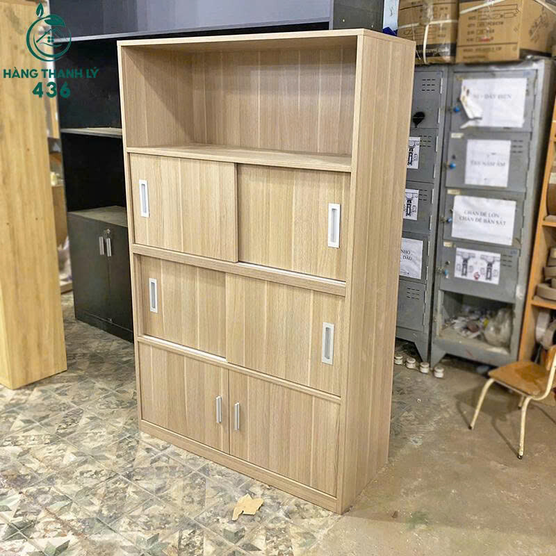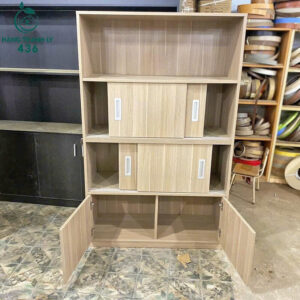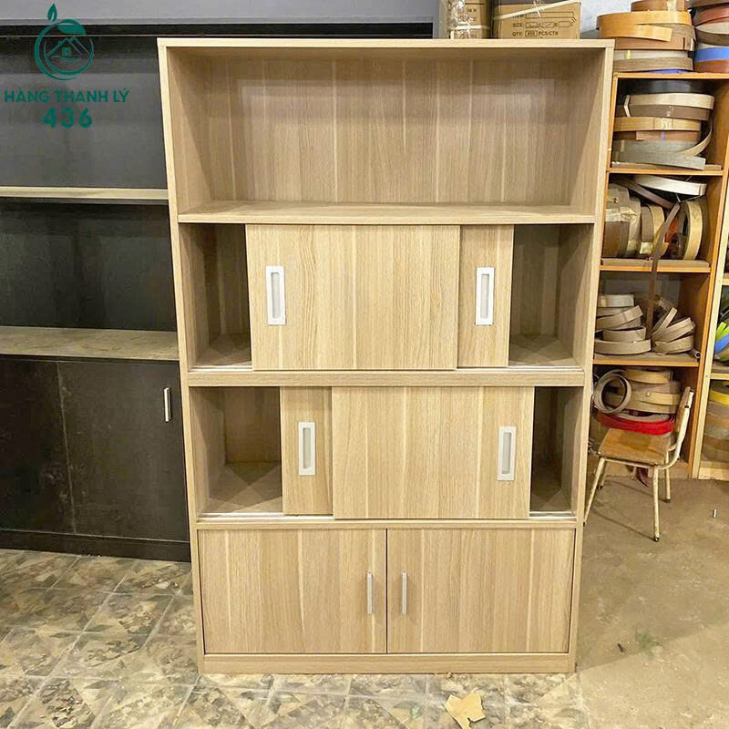 - Mô tả: Tủ trưng bày bằng gỗ công nghiệp màu sáng, thiết kế nhiều ngăn kệ kết hợp cửa lùa và cửa mở tiện lợi. Phần kệ trên rộng rãi, thích hợp để trưng bày sản phẩm, tài liệu hoặc vật dụng trang trí. Các ngăn tủ phía dưới giúp lưu trữ đồ đạc gọn gàng, dễ dàng quản lý. Tủ có kiểu dáng vuông vắn, hiện đại, phù hợp cho văn phòng, cửa hàng, siêu thị mini hoặc gia đình muốn trưng bày kết hợp lưu trữ.
