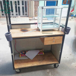 - Mô tả: Chiếc xe đẩy bán hàng ăn vặt này là lựa chọn hoàn hảo cho những ai muốn kinh doanh ẩm thực đường phố một cách linh hoạt và tiết kiệm. Xe được thiết kế tiện lợi với bánh xe giúp di chuyển dễ dàng đến mọi địa điểm. Phía trên có tủ kính trưng bày thực phẩm sạch sẽ, hấp dẫn, cùng với mái che giúp bảo vệ khỏi nắng mưa. Xe còn tích hợp không gian rộng rãi để đặt bếp, nguyên liệu và các vật dụng cần thiết.