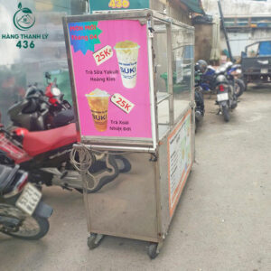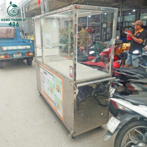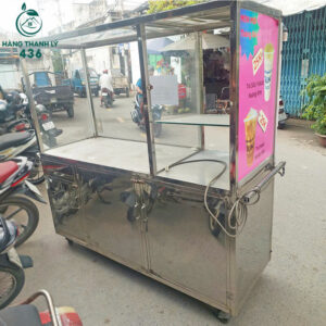 - Mô tả: Xe bán hàng cũ được thiết kế bằng khung inox chắc chắn, đi kèm hệ thống kính giúp trưng bày sản phẩm rõ ràng và sạch sẽ. Bên trong có kệ kính tầng tiện lợi để sắp xếp hàng hóa. Phía dưới được lắp bánh xe giúp bạn dễ dàng di chuyển xe tới vị trí mong muốn, phù hợp sử dụng ở vỉa hè, chợ, khu ăn uống hay sự kiện ngoài trời. Sản phẩm phù hợp cho nhiều ngành hàng khác nhau như bánh ngọt, đồ uống, thức ăn nhanh… Xe còn sử dụng tốt, ngoại hình ổn, giá cực kỳ tiết kiệm so với mua mới.