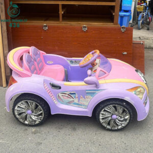 - Mô tả: Xe ô tô điện cũ cho bé thiết kế 2 chỗ ngồi rộng rãi, màu hồng tím phối vàng nổi bật, phù hợp cho các bé gái yêu thích phong cách công chúa. Xe có vô-lăng điều khiển, sinh động giúp tăng hứng thú khi chơi. Vỏ xe làm từ nhựa, bánh xe to chắc chắn, di chuyển êm trên mặt đường phẳng. Xe còn hoạt động tốt, ngoại hình còn mới khoảng 90%, pin và mô-tơ chạy ổn định. Sản phẩm thích hợp cho trẻ từ 2–7 tuổi, giúp rèn luyện phản xạ và mang lại niềm vui vận động an toàn.
