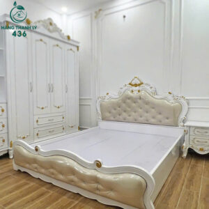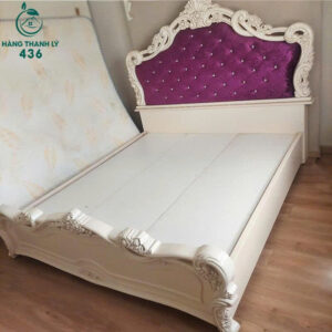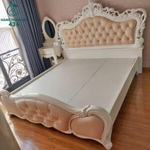 Giường Ngủ Tân Cổ Điển Chạm Hoa Văn Sang Trọng Mới 99%