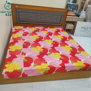 Giường Ngủ Cũ Gỗ Sáng Kèm Nệm Họa Tiết